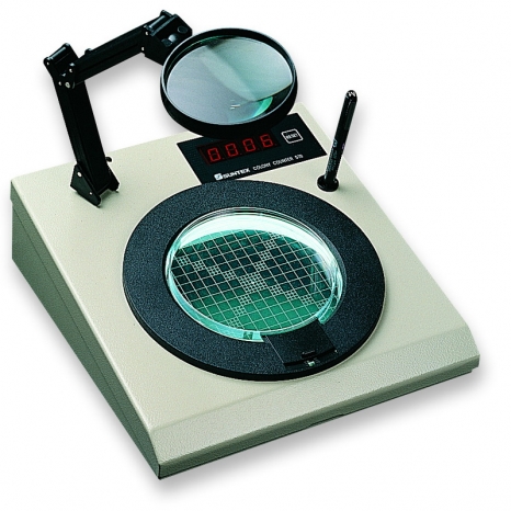 Số lượng khuẩn lạc có thể được ghi nhận tối đa 4 chữ số (9999) và hiển thị trên màn hình LED đỏ sáng. Tay đỡ điều chỉnh tiêu cự cho phép đặt kính lúp ở nhiều góc làm việc khác nhau, đồng thời có thể lắp các loại thấu kính với độ phóng đại khác nhau.